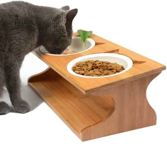 Wooden Stand Cat Bowls